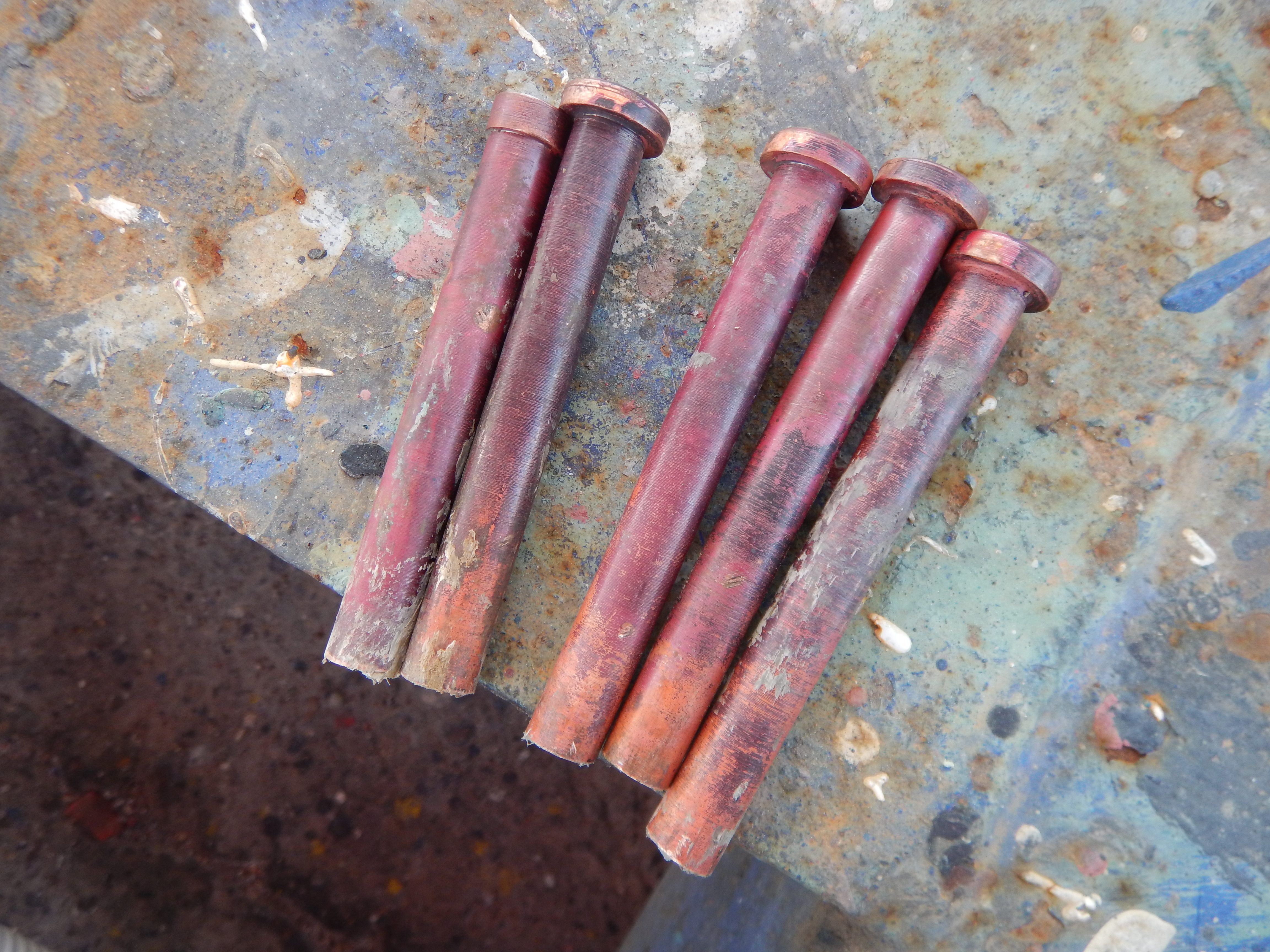We would have struggled to do it without the help of my dad. He managed to find the copper bar in the UK and turn us a set of new rivets on his lathe. He then bought them down to Spain for installation.