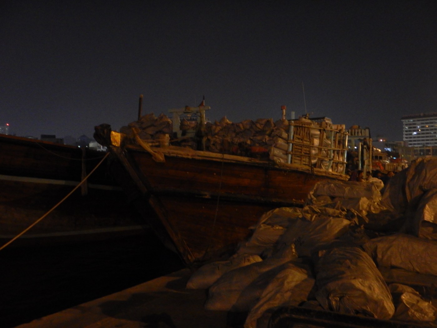 As we left the Spice Souk, we were amazed to find the wharf of the Dubai Creek crammed with old wooden cargo boats called Dhow. It was dark and they were being piled high with every conceivable product including car tyres, air conditioners, random parts etc. Turns out these traditional wooden boats still ply their trade between Dubai Creek and Iran, Oman, India and Africa. As Sanctions from the West still cripple Iran these boats keep the flow of goods alive. My Middle Eastern geography needs improving, as I hadn’t realised that Iran was only 50NM across the water from Dubai… a very short trip!
